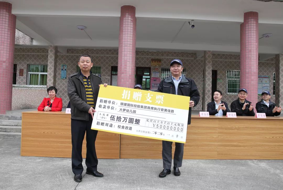 捐贈儀式上,集團首席執行官黃佳爵個人向大羅小學捐贈了50萬元,集團公司其它成員籌集善款17萬元整。黃佳爵先生表示,他個人的捐款主要用于建設大羅幼兒園,希望孩子們從小就受到科學、優質的基礎教育,努力學習,用知識改變命運。